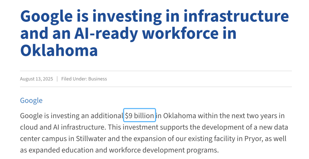 谷歌许诺将来两年投资90亿美元用于扩建美国AI云取数据核心图片来历于Oklahoma Commerce官网截图正在AI教育的普惠笼盖取下层落地能力上,所谓强云端、轻终端的普惠模式,